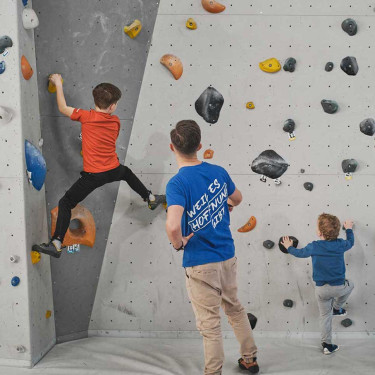 Durch Bouldern erlernen Kinder spielerisch Selbstwirksamkeit und den Umgang mit Herausforderungen.